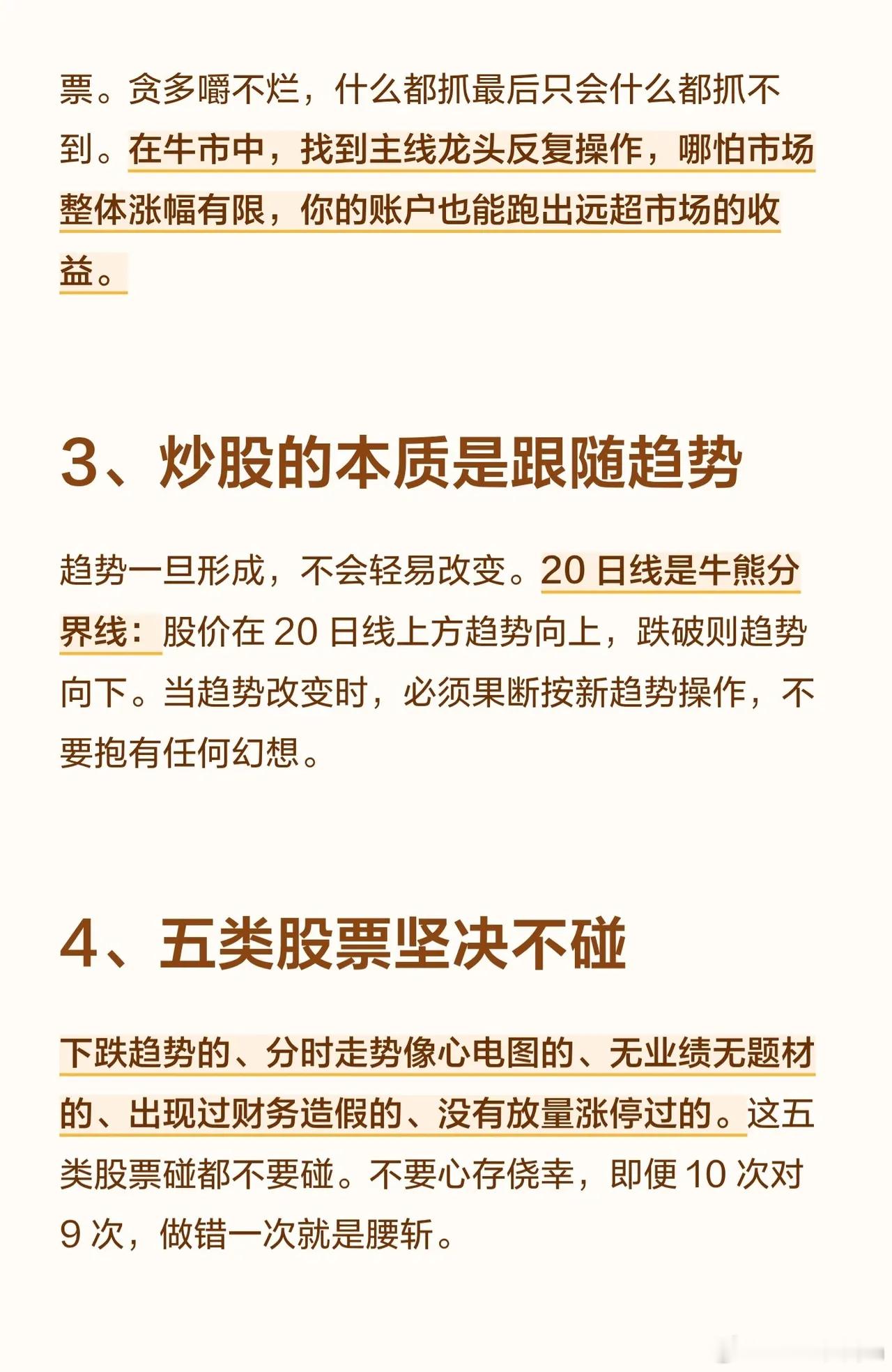 专注于主线龙头,不要试图抓住所有跟风或补涨的票。贪多嚼不烂,什么都抓最后只会什么都抓不到。在牛市中,找到主线龙头反复操作,哪怕市场整体涨幅有限,你的账户也能跑出远超市场的收益。