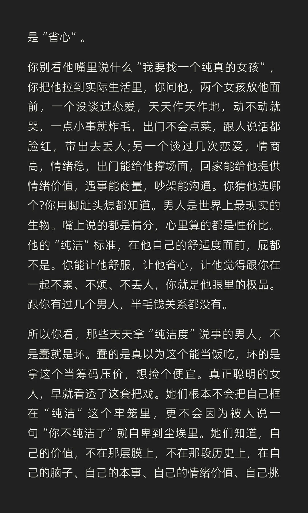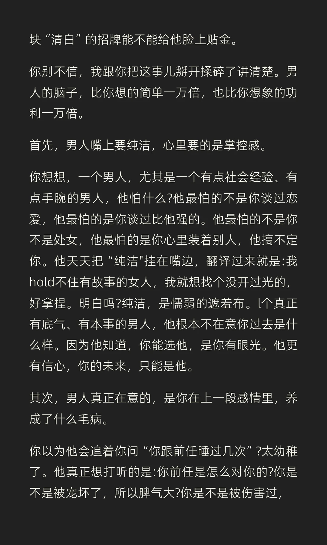 男人根本不在意女生的纯洁度