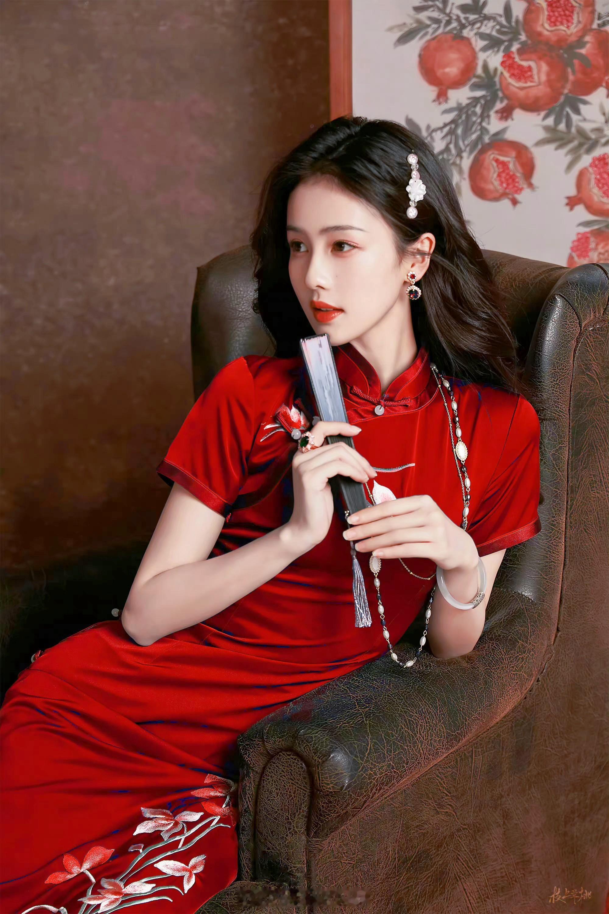 江南的风,好像天生就懂旗袍的韵。不是浓墨重彩的惊艳,而是像这一身