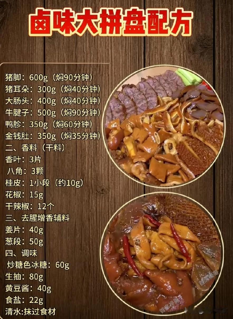 有了这个独家配方,不管是鸭脖、鸭翅、鸭爪,还是鸡蛋、豆干,都能卤出令人赞不绝口的美味。无论是自己在家享受美食,还是开店创业,都能轻松应对。赶紧动手试试吧,让这独特的卤味在你的生活中绽放光彩! 卤味小窍门 卤味卤料秘方