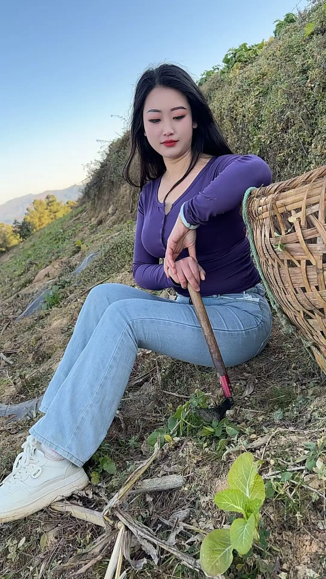 山里姑娘大山里的味道 山里姑娘干农活 紧身牛仔裤