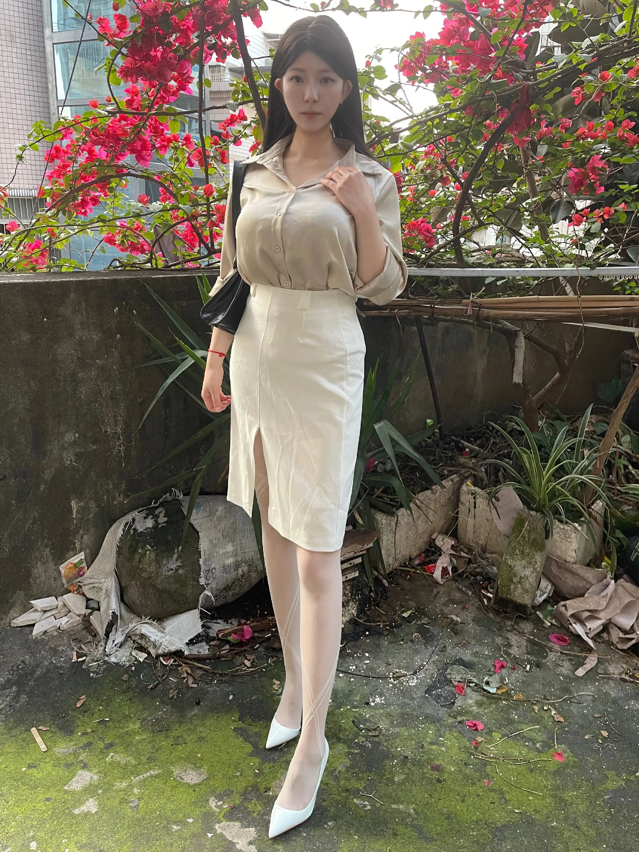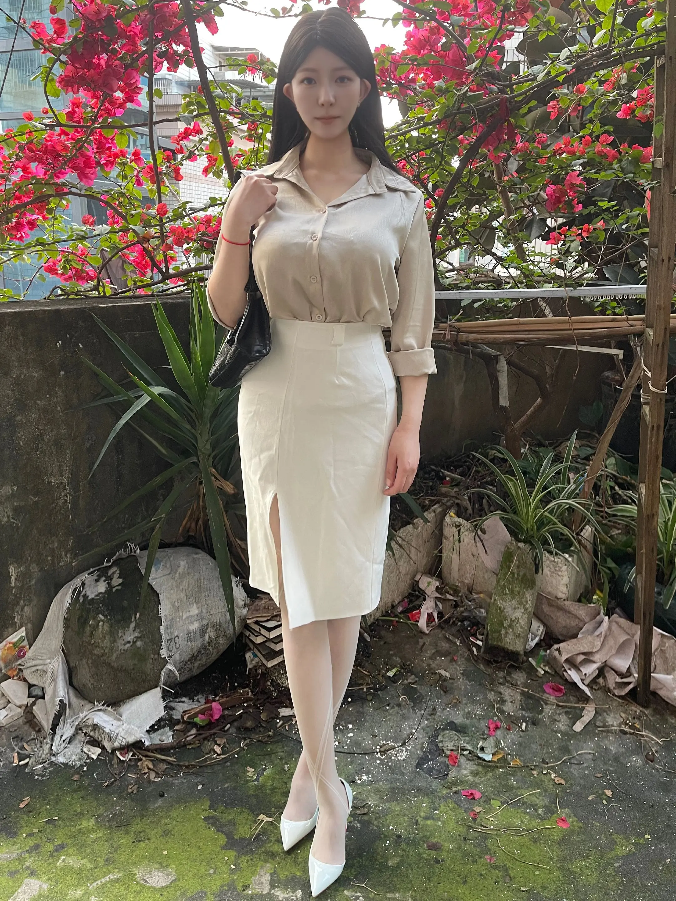 清新简约风穿搭,白色衬衫+短裙,优雅又减龄!💕