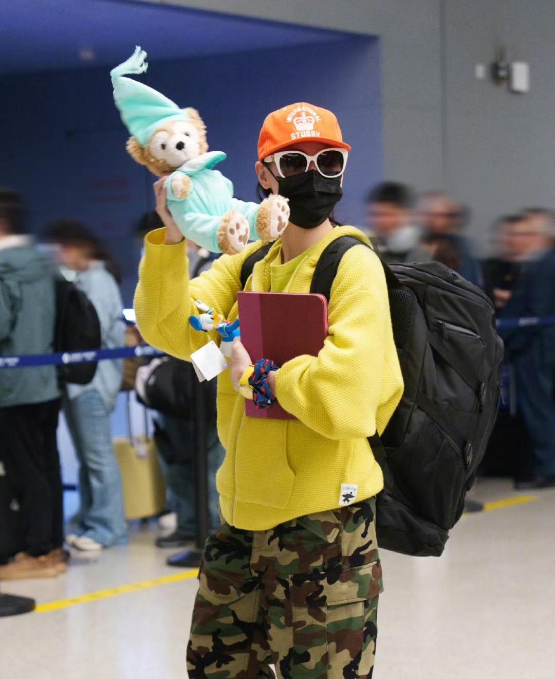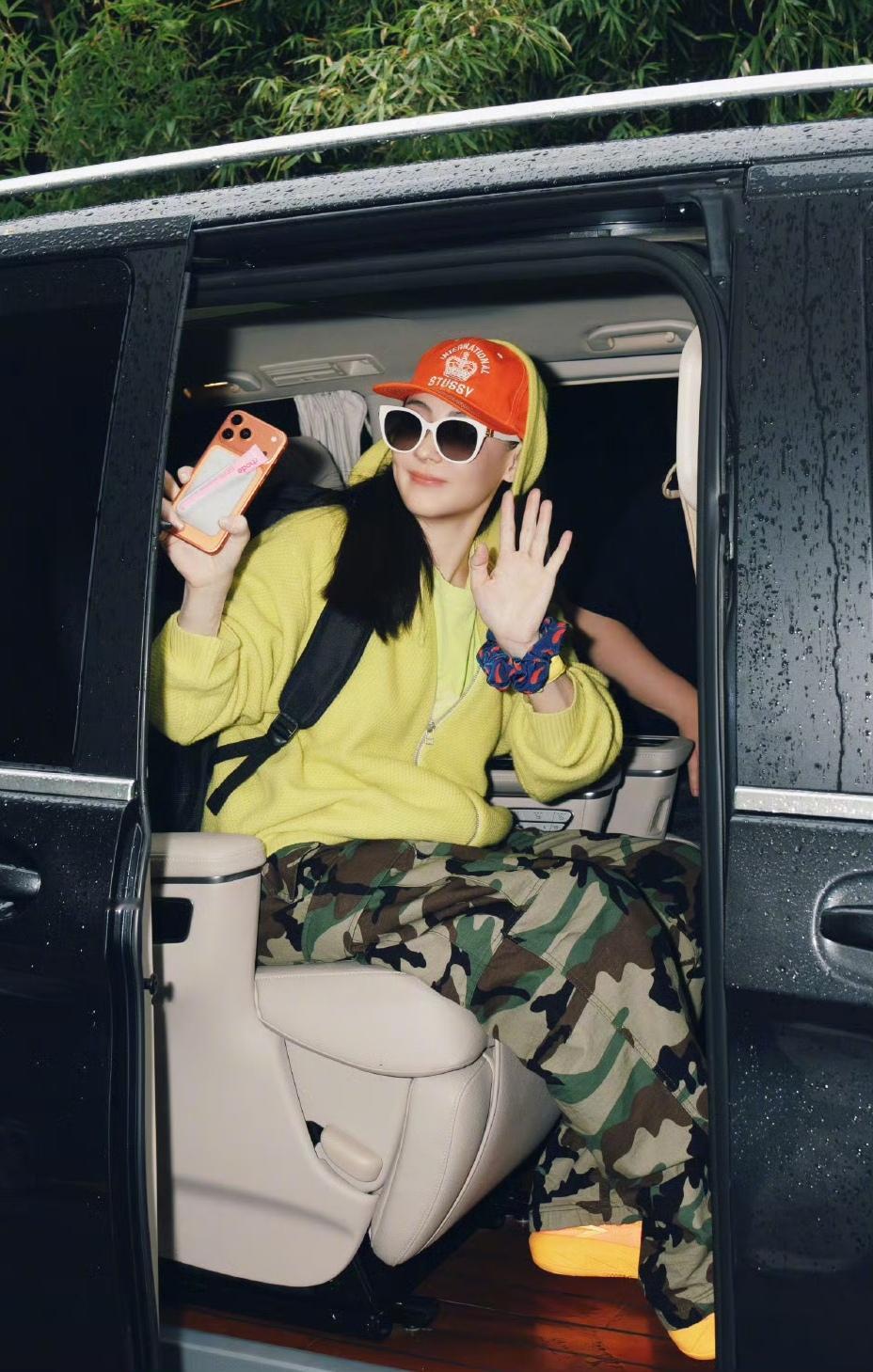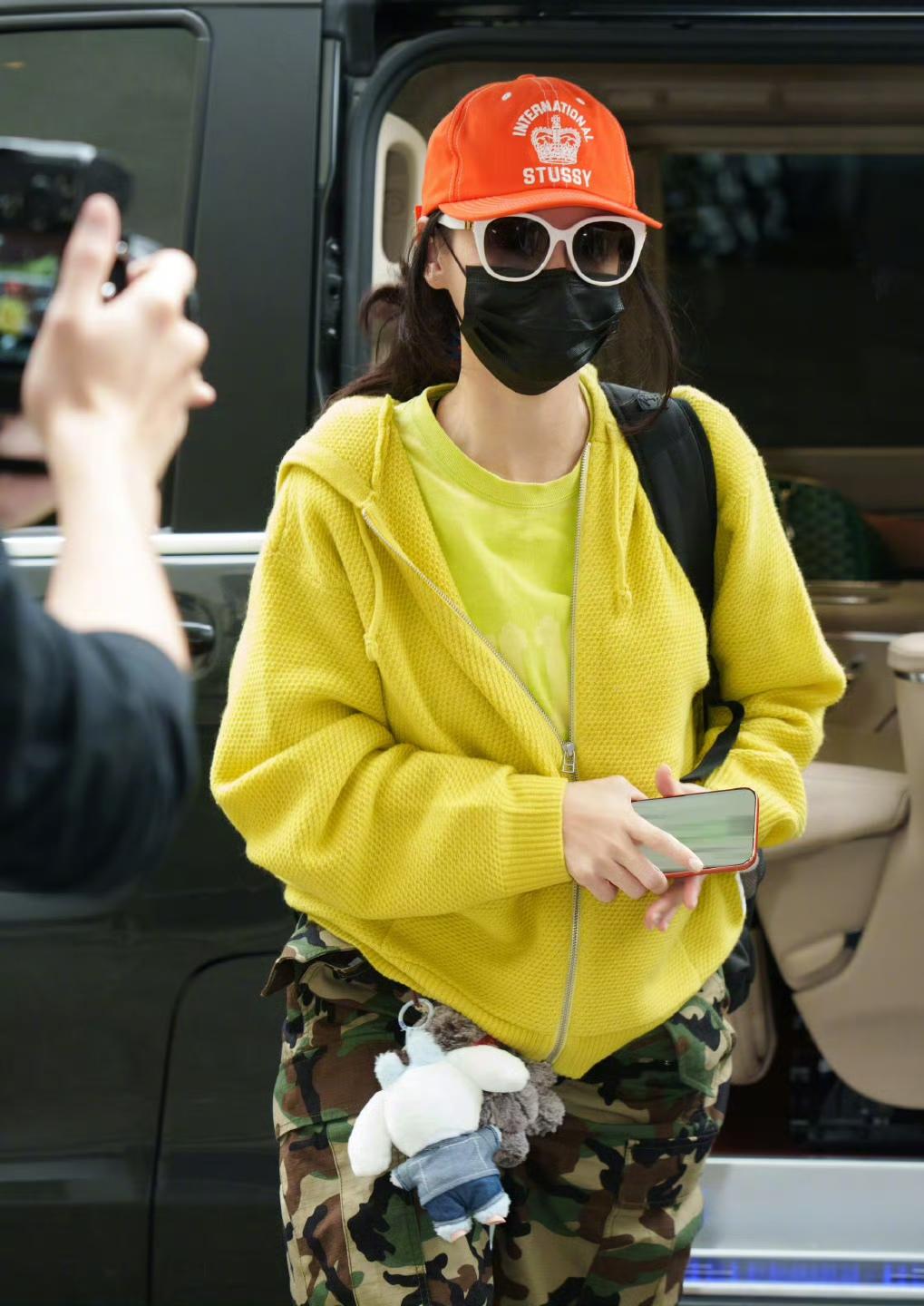张柏芝真会穿 把这么难穿的黄色外套 穿出了时尚新高度 只因她搭配了一条迷彩裤 与