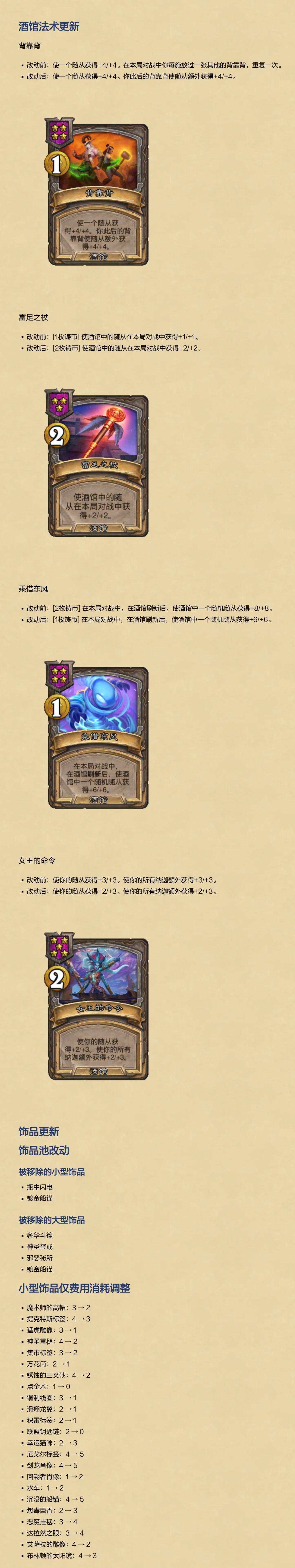 炉石传说 酒馆战棋平衡调整,控哥整理几个重点改动:1、鸡哥移除2、卡雷去5本了3