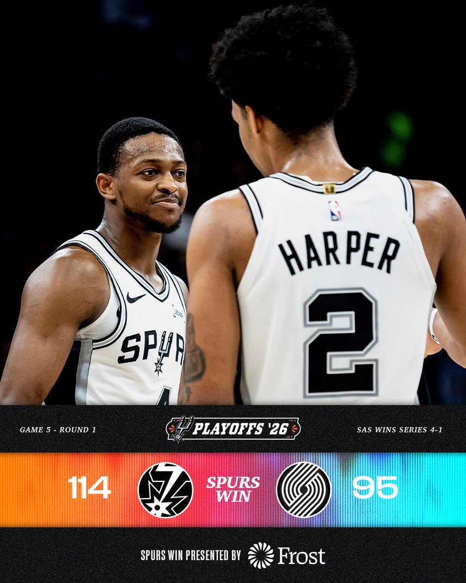马刺晋级西部半决赛马刺4比1淘汰开拓者杨瀚森完成了NBA菜鸟赛季 恭喜马刺4-1晋级,时隔9年再次突破季后赛首轮,属于文班亚马的时代正在到来。杨瀚森也结束了自己的新秀赛季,今天末节登场,出手2记三分,可惜没能命中。开拓者本赛季打进季后赛,已经完成了任务,期待下个赛季利拉德复出,杨瀚森更加成熟,获得更多机会!