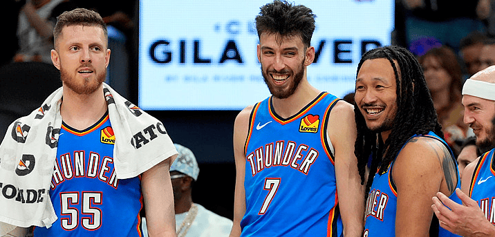 谢伊-吉尔杰斯-亚历山大(27岁)在这轮系列赛中打出了MVP级别的表现。整个系列赛,亚历山大场均出战35.8分钟,狂揽33.8分、3.8篮板、8.0助攻,投篮命中率高达55.1%,罚球命中率89.8%。本赛季常规赛,亚历山大场均贡献31.1分、4.3篮板、6.6助攻,投篮命中率55.0%,助攻数和投篮命中率均创个人生涯新高。内线核心切特-霍姆格伦成为球队支柱,系列赛场均贡献两双数据,收官战狂砍24分12篮板。哈尔滕施泰因同样在内线发挥稳定,多场比赛拿下两双。