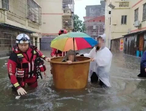 钦州消防也没闲着,从27日早上开始,橡皮艇就在齐腰深的水里往返,背着老人,抱着孩子,把被困的群众一批批转移到安全地带。