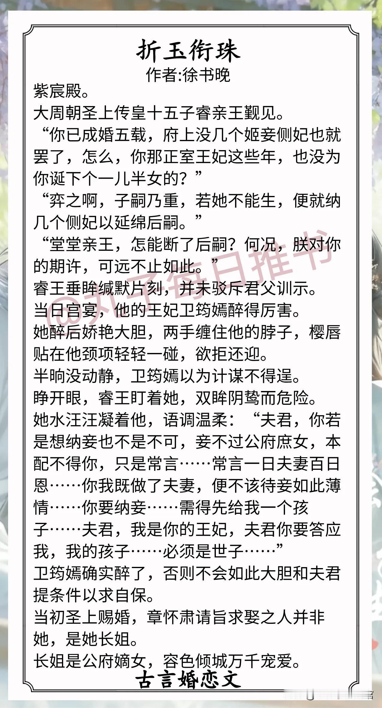 8.《折玉衔珠》作者:徐书晚(有点小心机的温柔美人vs位高权重亲王,替嫁,先婚后爱)