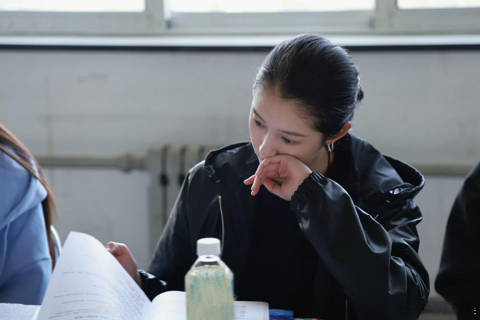 关晓彤贴头皮围读照关晓彤剧本围读ing 关晓彤贴头皮围读照,我好爱关晓彤
