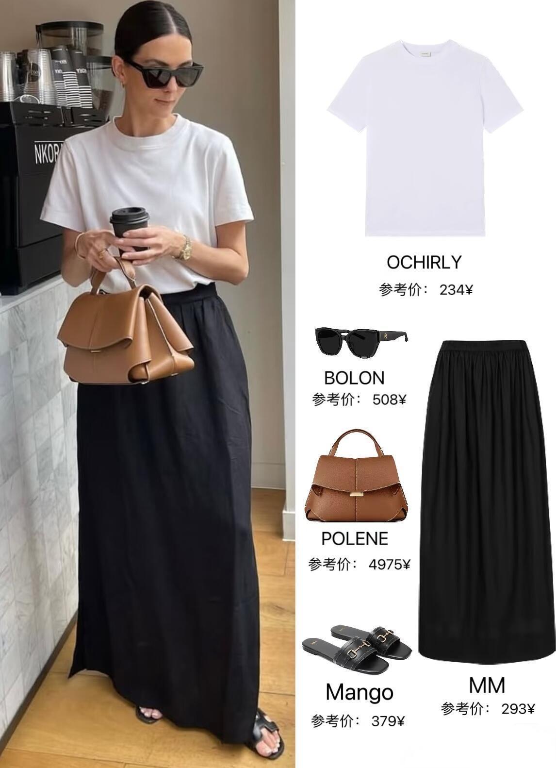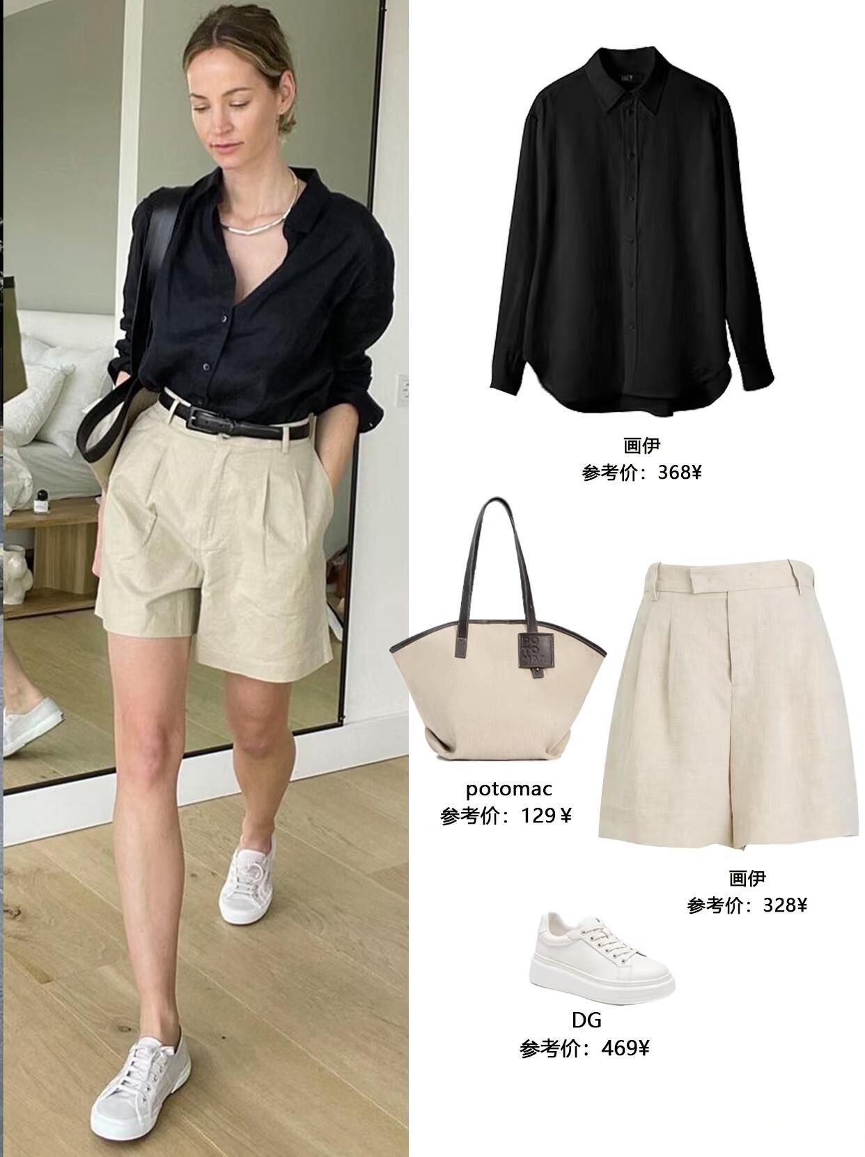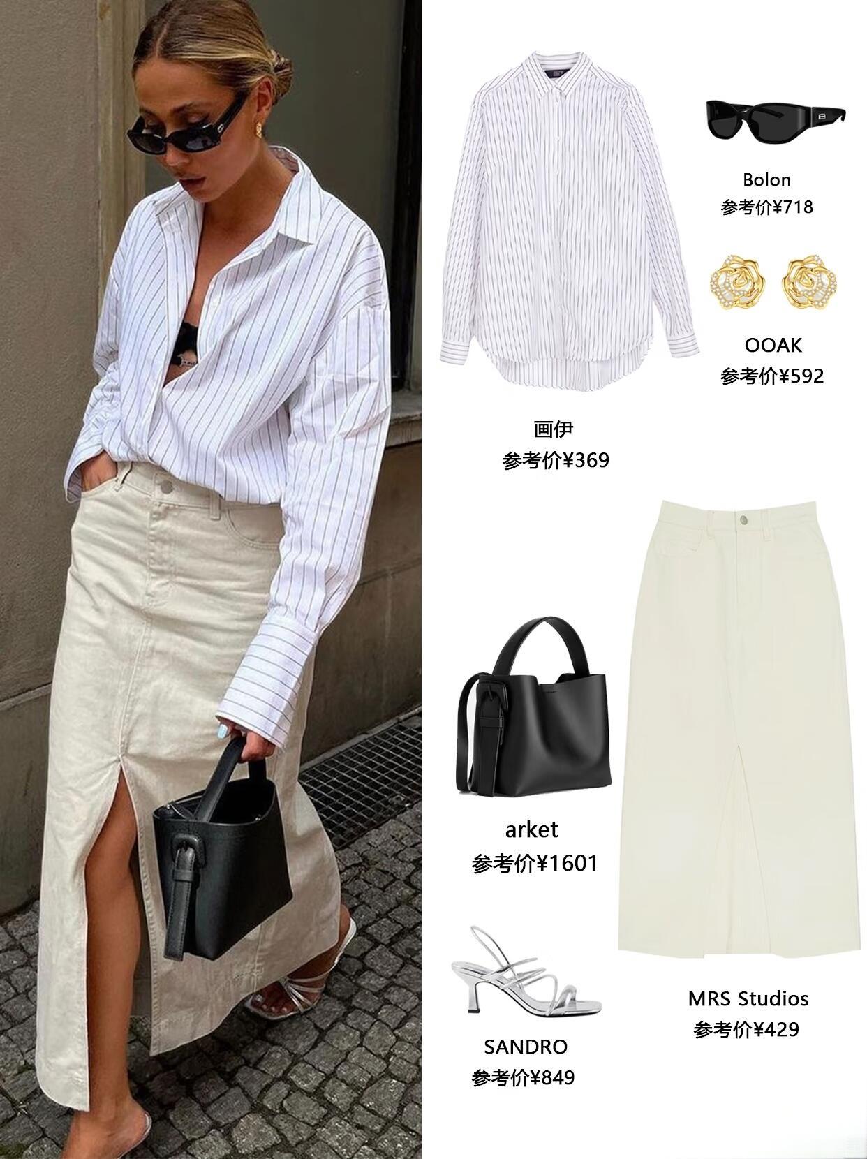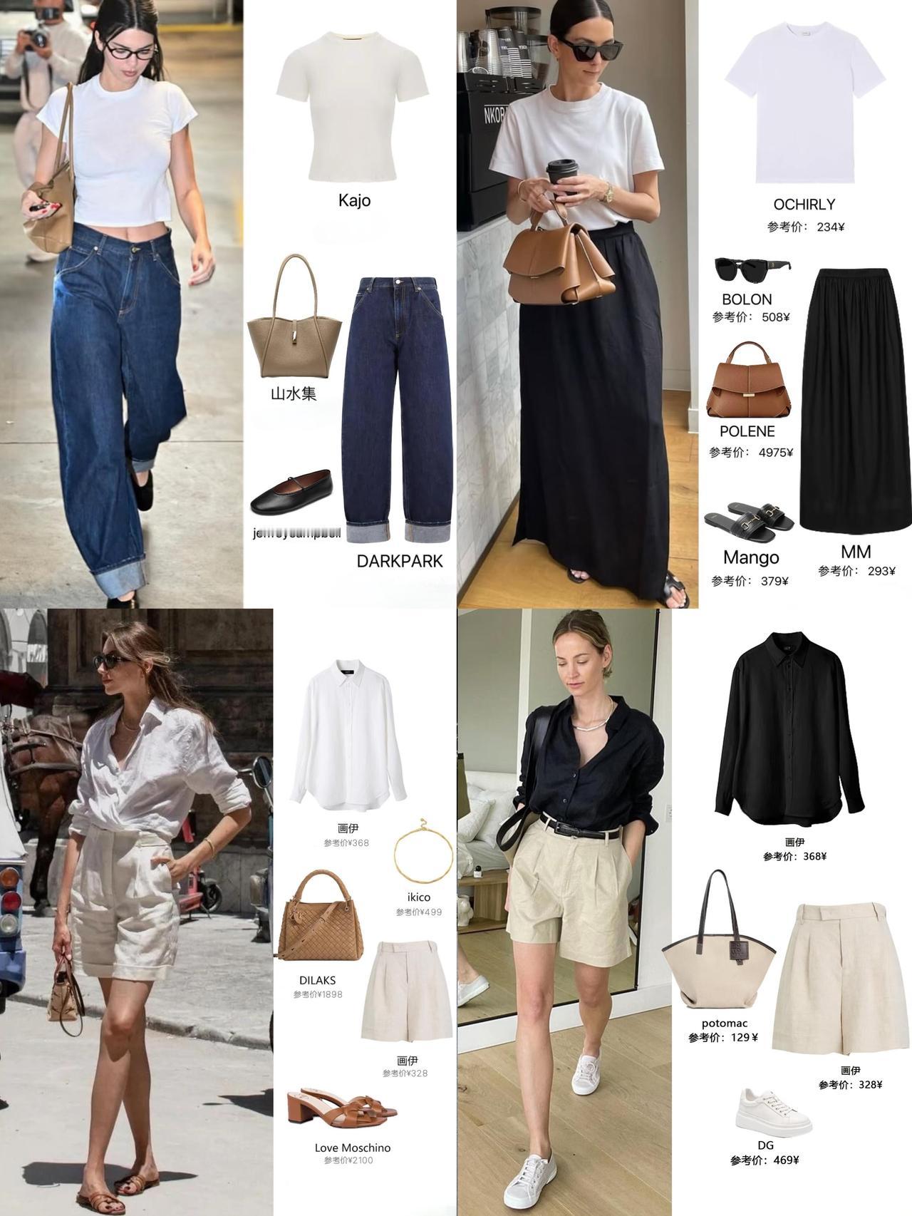 白T搭高腰阔腿裤、亚麻衬衫配垂感半裙,用低饱
