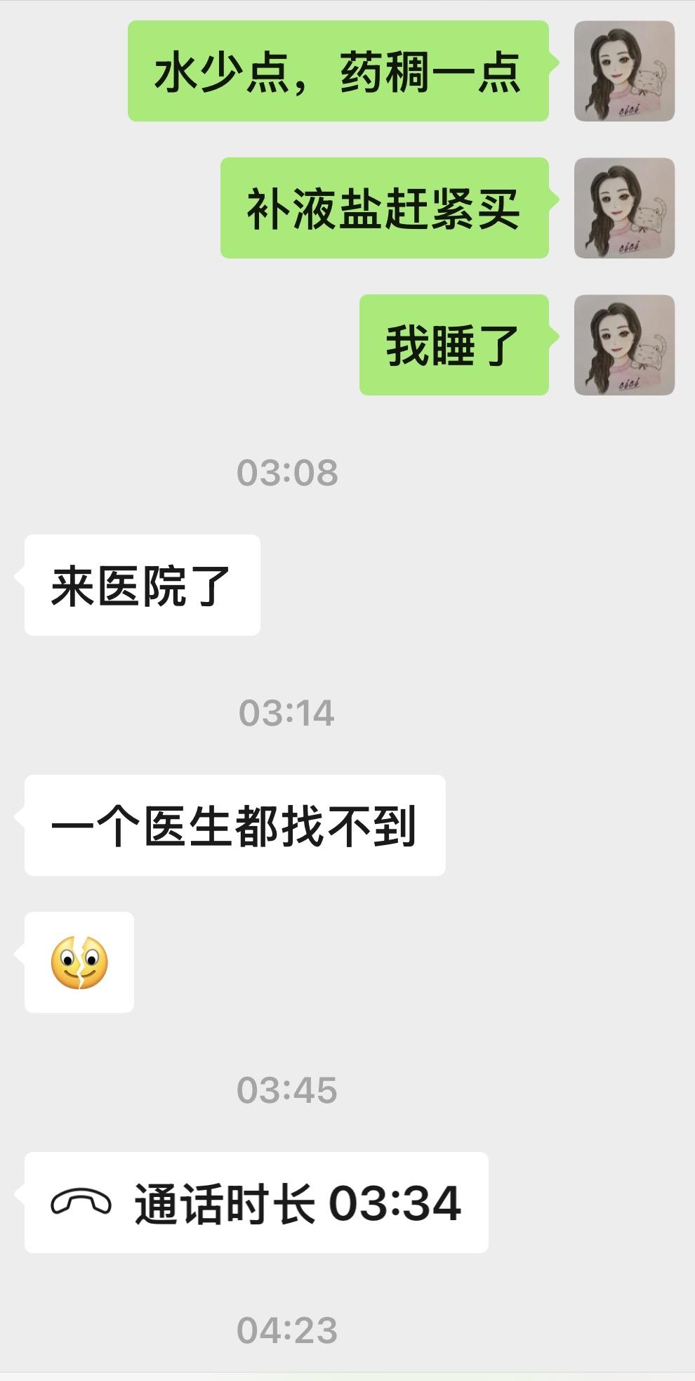 好嘛,这话说的。昨晚儿子又拉肚子,停不下来严重脱水。我交代他吃药喝补液盐后就睡了。没想到半夜止不住,凌晨3点他也跑了医院急诊。