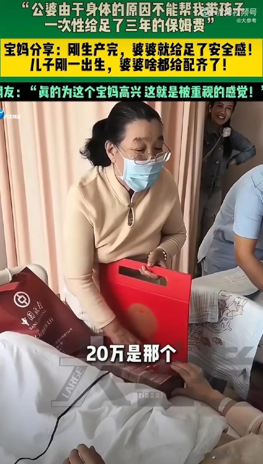 让人羡慕!山西一位宝妈刚生下儿子,婆婆因为身体原因不能帮忙带孩子,直接一次性给足了三年的保姆费——整整20万!