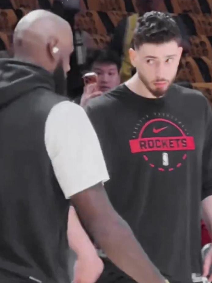 在火箭和湖人G1比赛前詹姆斯入场的时候,坐在替补席的申京突然站了起来。媒体捕捉到这一画面,解读为“申京站起来向詹姆斯致敬”,视频在网络上疯传起来。