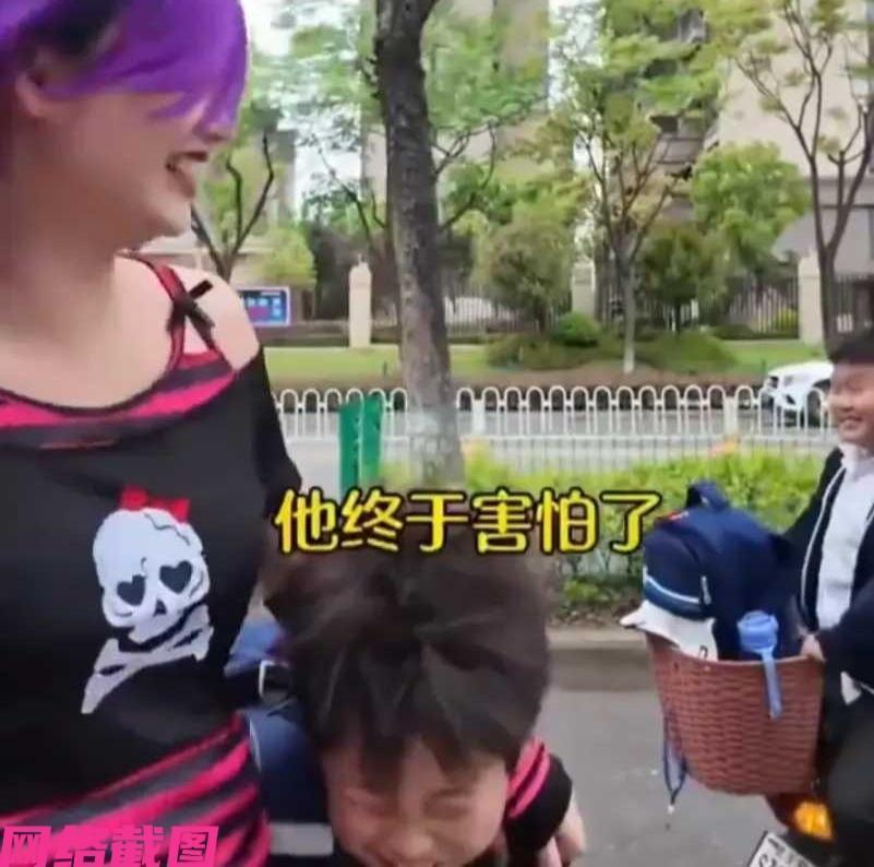 某位妈妈看到上小学的儿子,不知怎么合适上了非主流的装扮,妈妈没有刻意阻止孩子的喜欢,而是直接把自己打扮成非主流的样子,还来到学校接他。