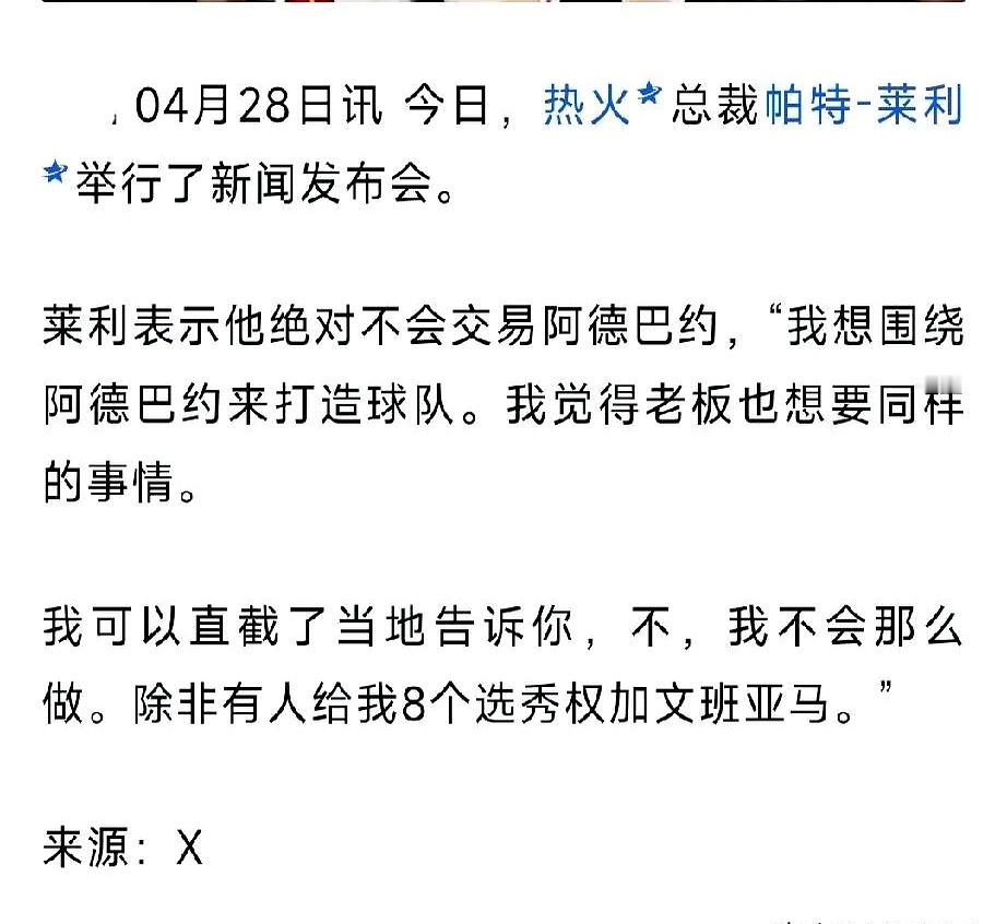 马刺要是被叫去接受阿德巴约加八个首轮,十有八九会当场笑场——换位思考都不成立。