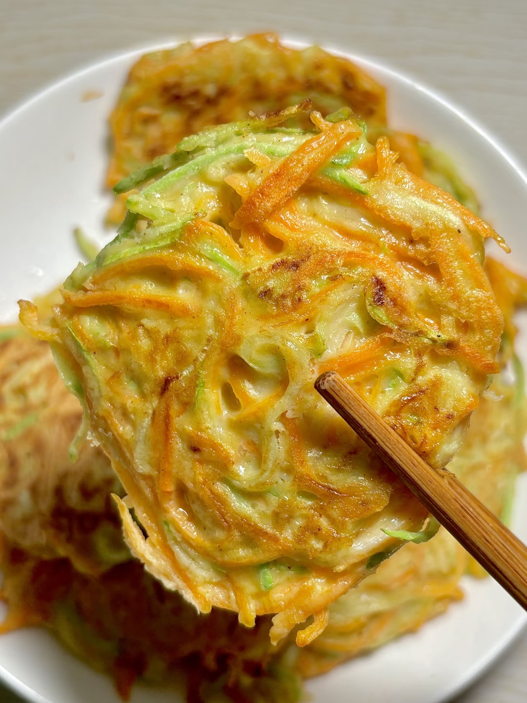 这道菜灵感源自童年记忆。小时候,妈妈总变着花样做早餐饼:有时是土豆丝饼,有时是玉米饼。有一次,家里只剩胡萝卜和西葫芦,妈妈灵机一动将它们混合,没想到意外好吃!后来我才知道,这种搭配不仅营养均衡,西葫芦的清甜还能中和胡萝卜的微涩,简直是天作之合。