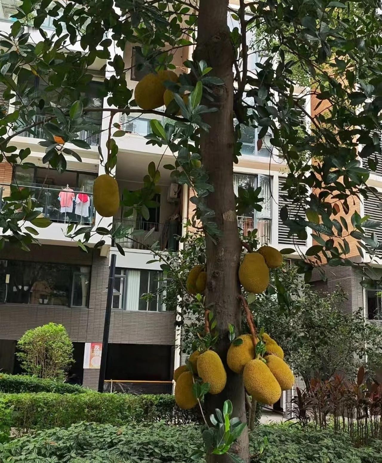 路边这些行道树结的芒果、菠萝蜜,