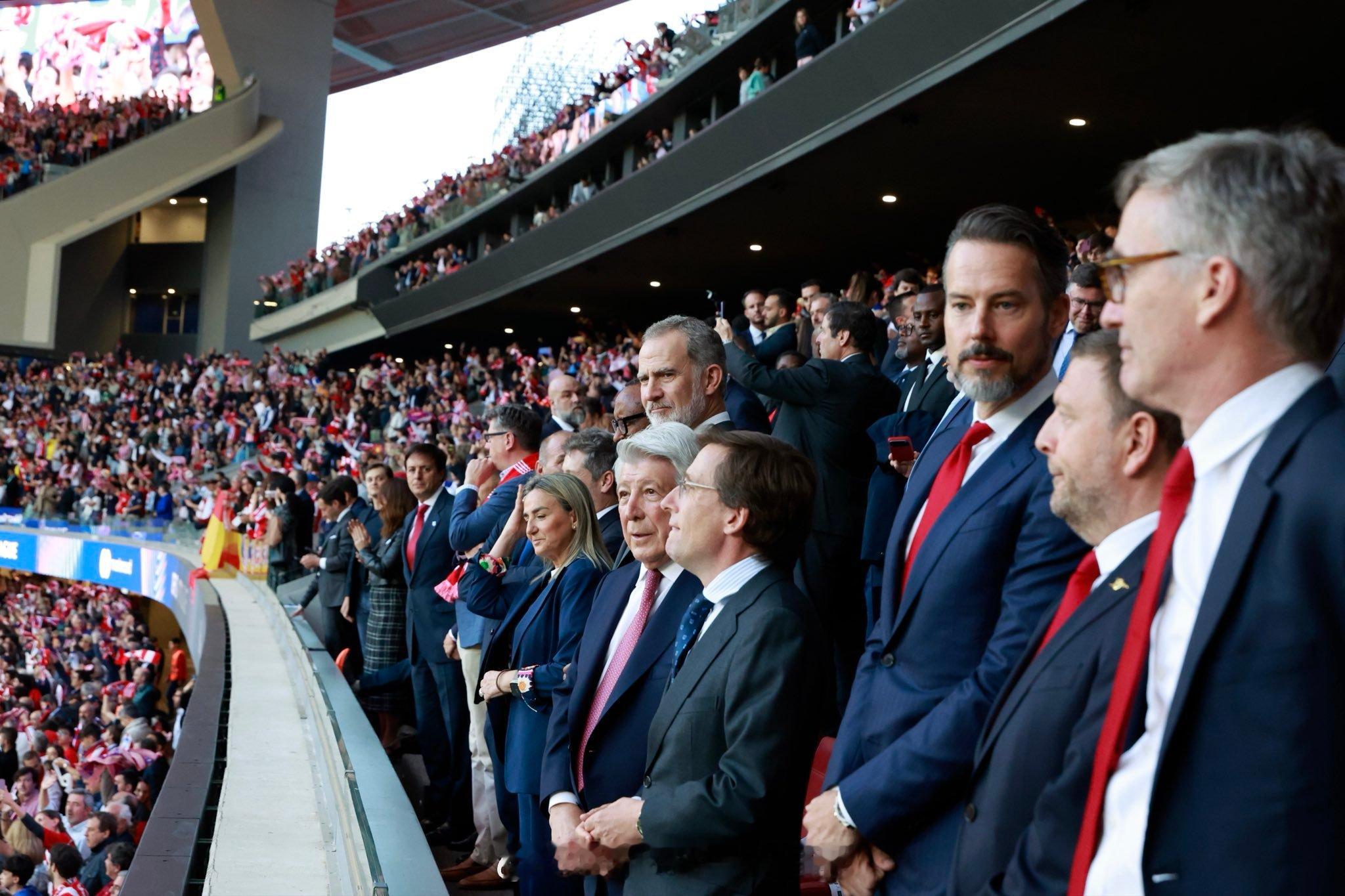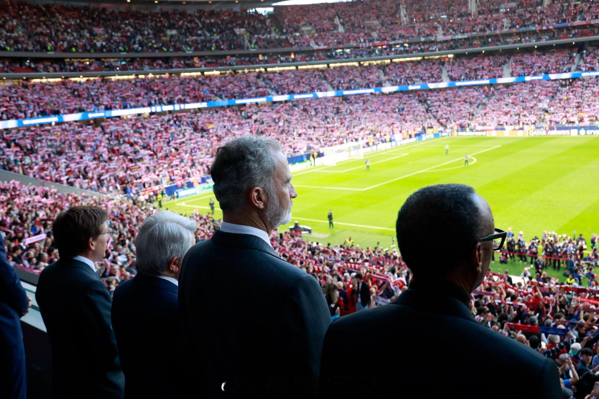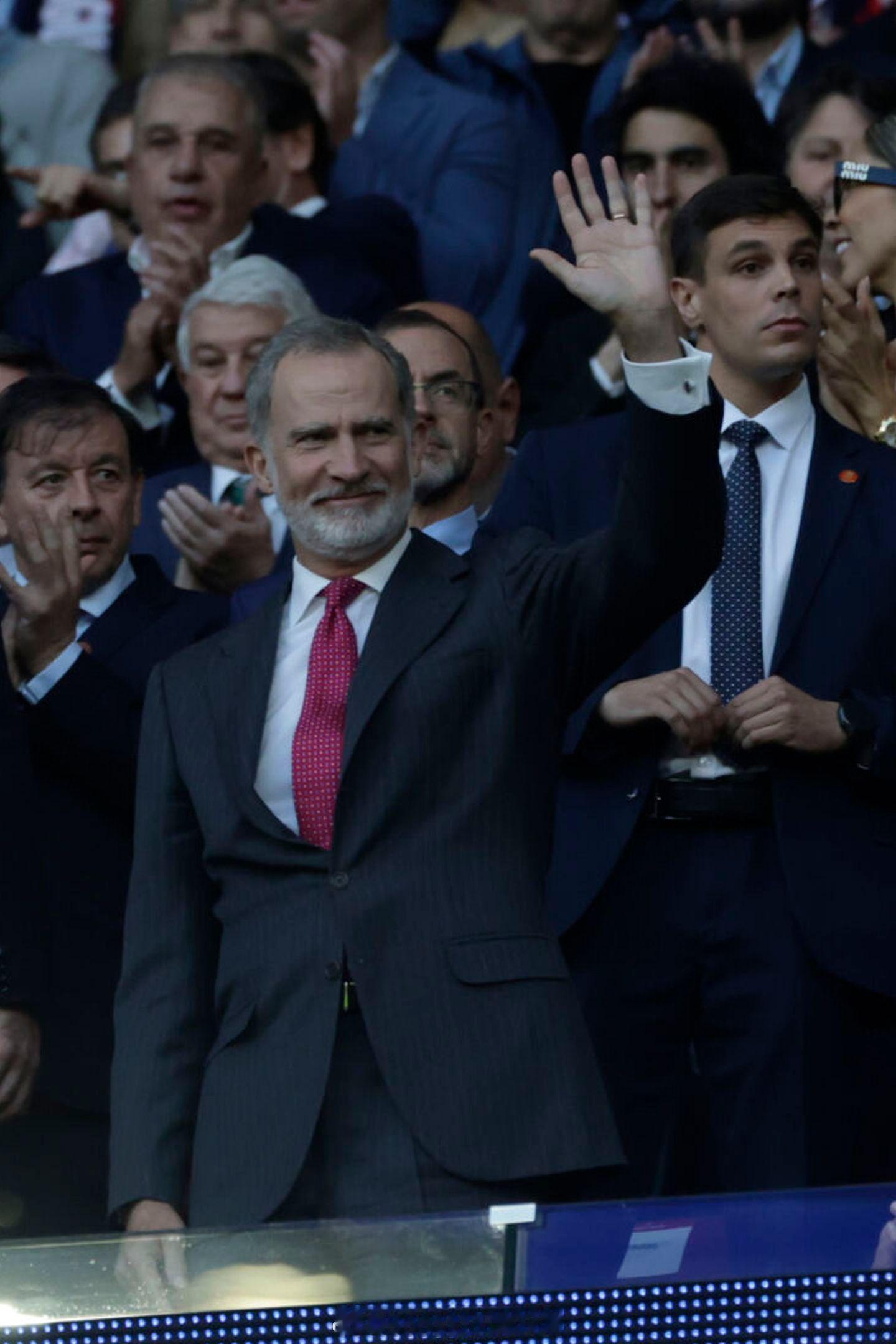 西班牙王室4月29日,欧冠半决赛马竞VS阿森纳,西班牙国王费利佩六世现身支持。