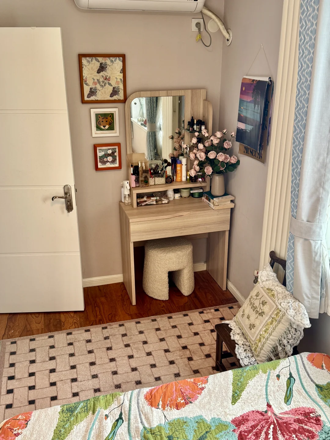 而且床与窗户与墙面形成了半包围的结构,睡起来特别有安全感!床尾空余的空间,还能放梳妆台和一块自由活动区[大笑R]