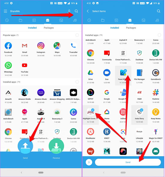 在两部小米手机上下载并安装ShareMe,这是一个很棒的AirDrop替代品。然后,打开应用,授予必要的权限,启用蓝牙和Wi-Fi,并登录。在源手机上,点击ShareMe中的“发送”。