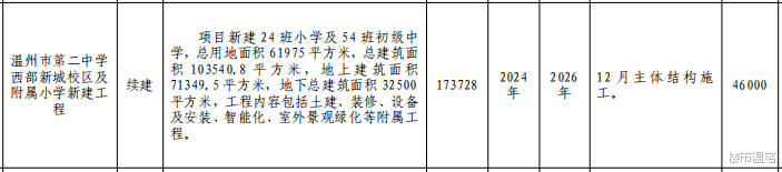 而今年3月,在鹿城区发布的《2025年政府投资项目计划表、项目前期计划表》中,对2中西部新城校区及附属小学的完工时间描述,依旧是2026年。