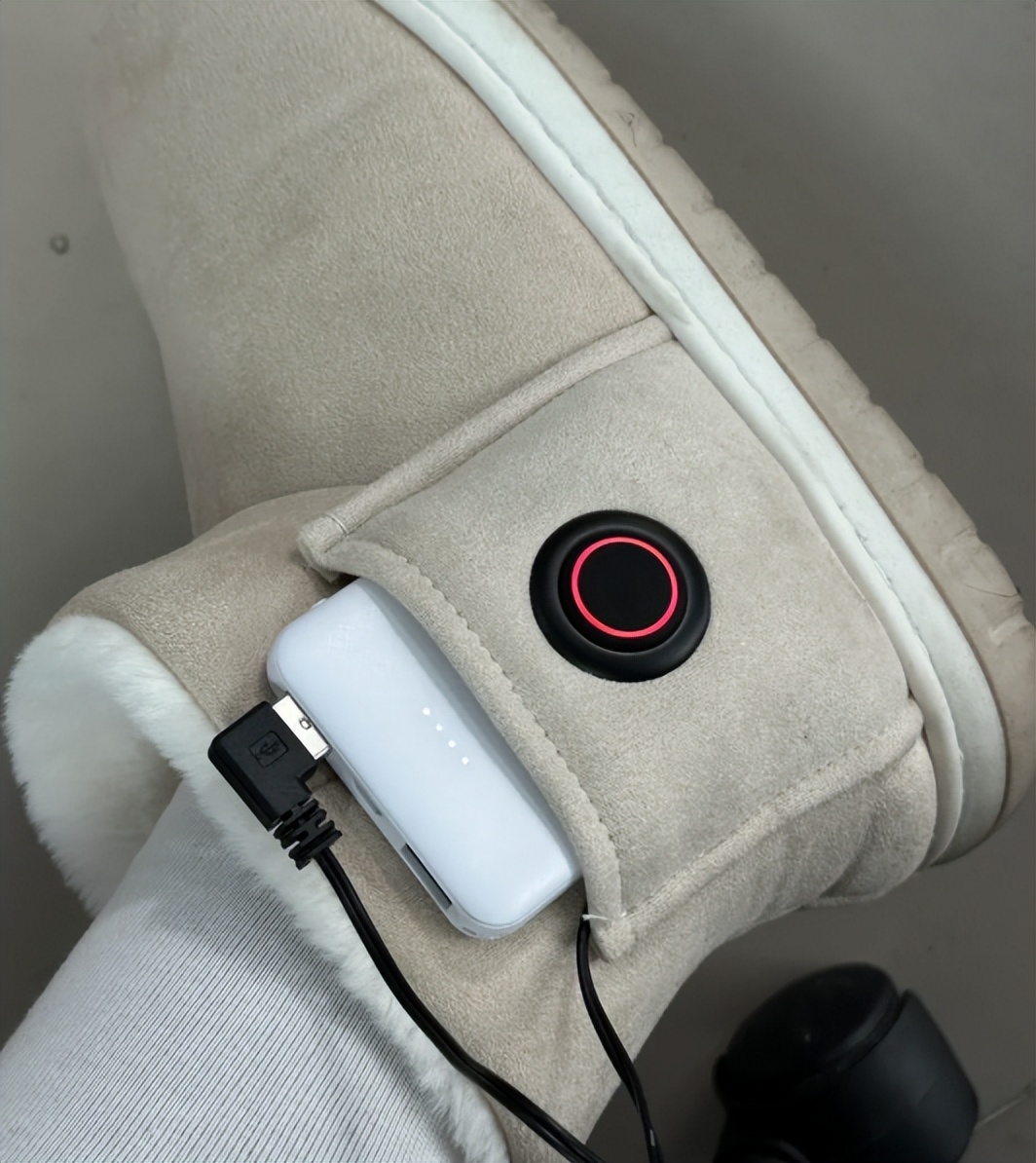 说简单点,它之所以能够发热,都是因为里面放了一块类似充电宝的电池,把电池充满后放进鞋子里面,鞋子就可以发热了。