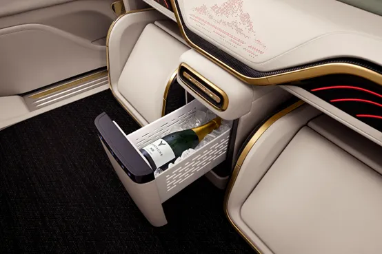 娱乐与舒适配置包括50英寸IMAX巨幕、22扬声器丹拿音响系统、双冷暖箱及隐藏式雨伞等,从细节处提升用车体验。