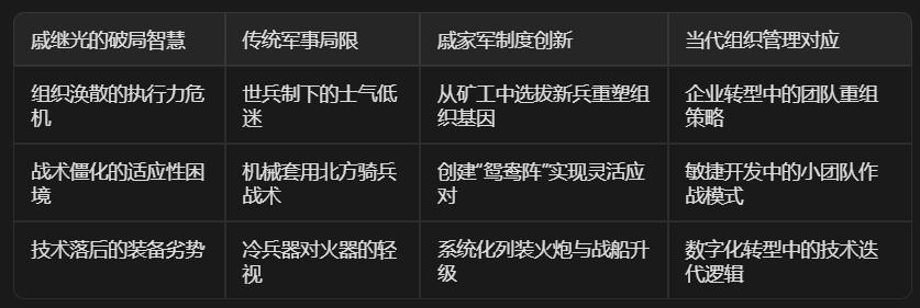 这场修炼的本质,是将戚继光的系统思维转化为现代人的破局能力。当你能在混乱中重建秩序,在局限中创新方法,便是对“戚家军精神”的当代传承——不是模仿其严刑峻法,而是继承那种“再造系统”的创造性勇气。
