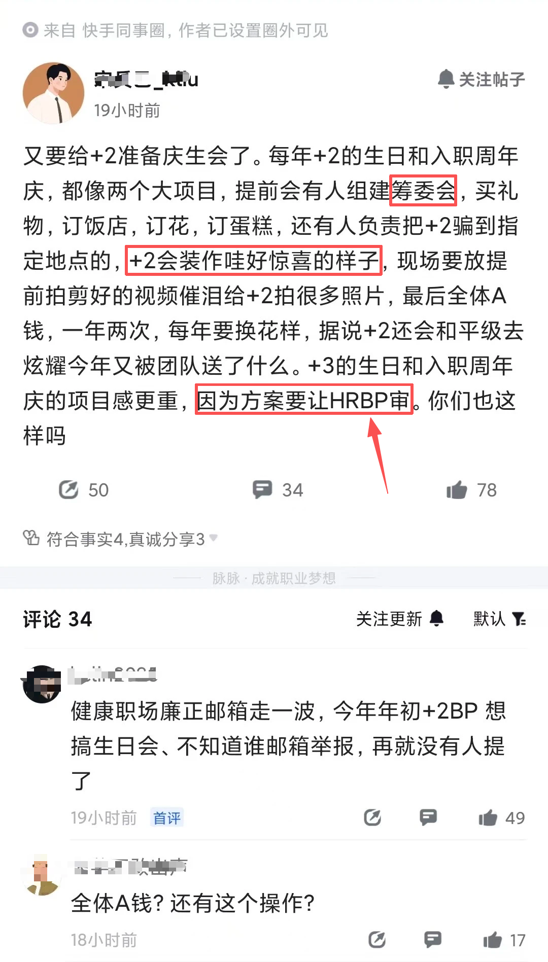 快手员工需AA为“+2”“+3”领导庆生,方案还要HRBP审核,这么荒诞会是真的吗?