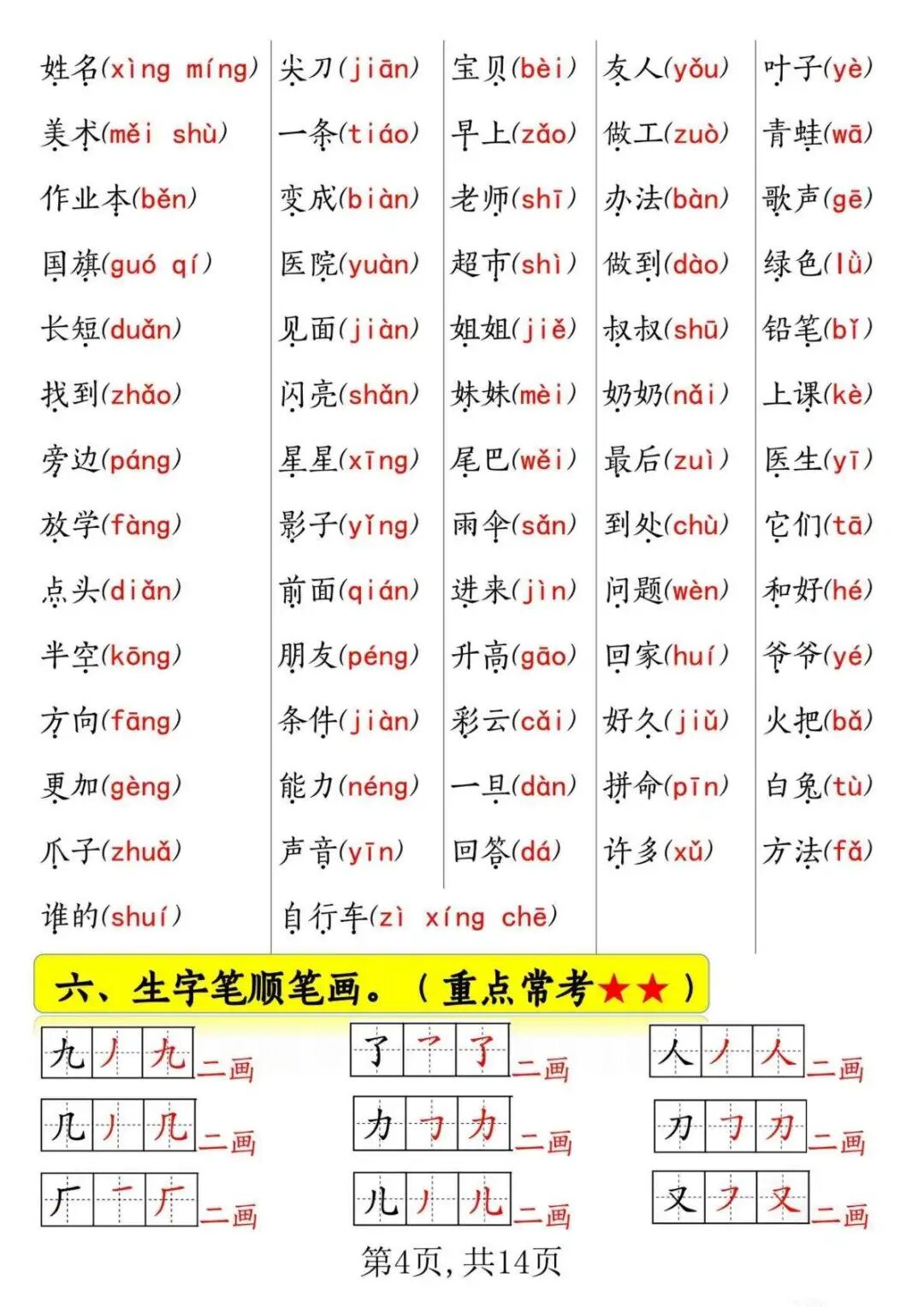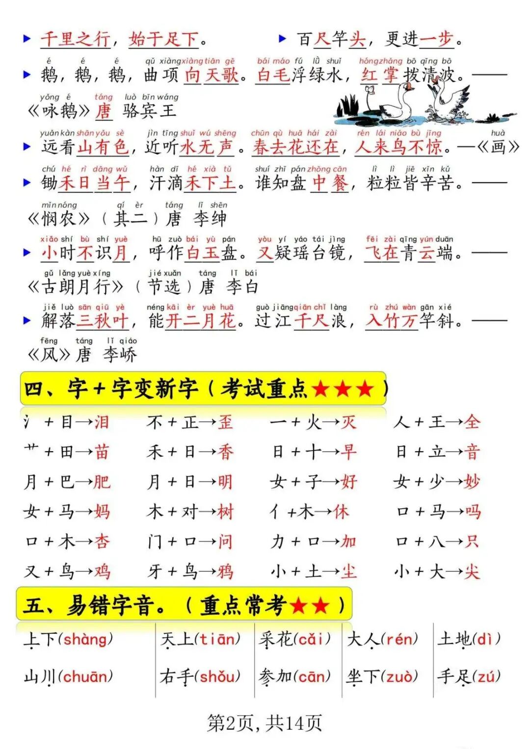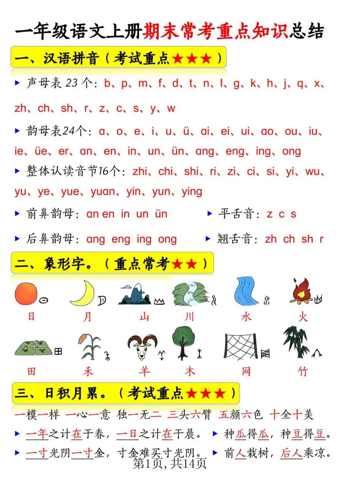 这份《新一上语文期末常考重点知识总结(15考点)14页》电子版可打印,方便又实用,可随时打印,无论是作为日常练习,还是课前预习、课后练习,都非常合适。