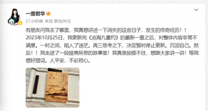 这些博文让不少网友担心。还有读者发现,她还在晋江更新了自己的专栏。