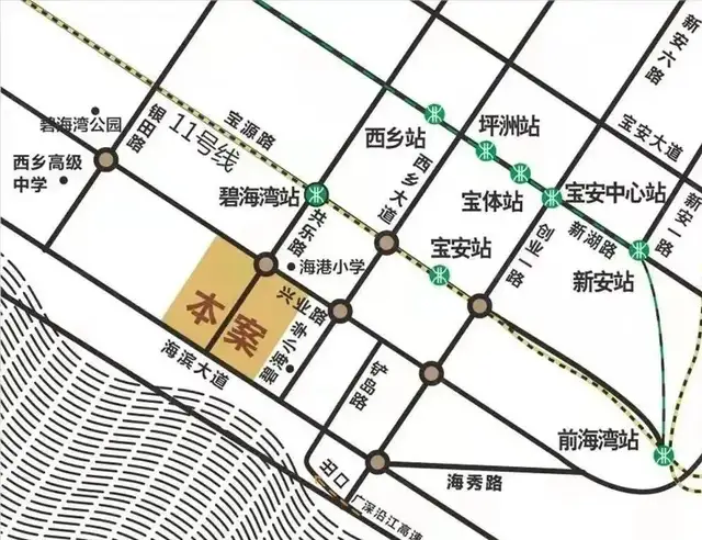 地铁配置:小区邻近地铁11号线碧海湾站,步行约763米即可到达,同时距离地铁1号线西乡站约1.3公里。双地铁线覆盖,可轻松抵达深圳各区,通勤无忧;