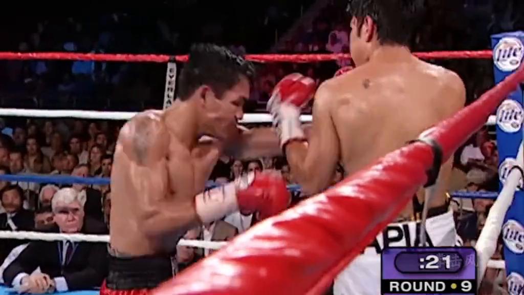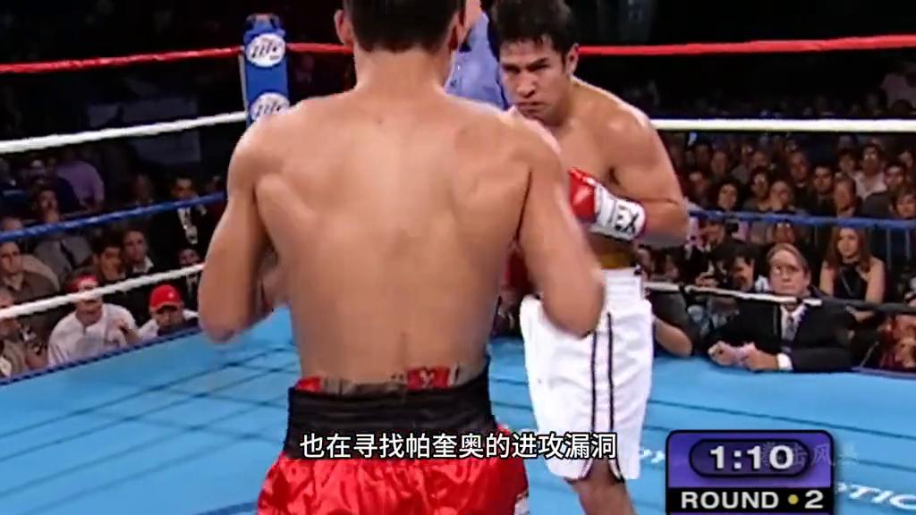 而巴雷拉的经验非常足,他利用臂展控制距离的同时,也在寻找帕奎奥的进攻漏洞。而且正面的对攻,巴雷拉也是非常的强硬,只不过帕奎奥的拳速明显更胜一筹。