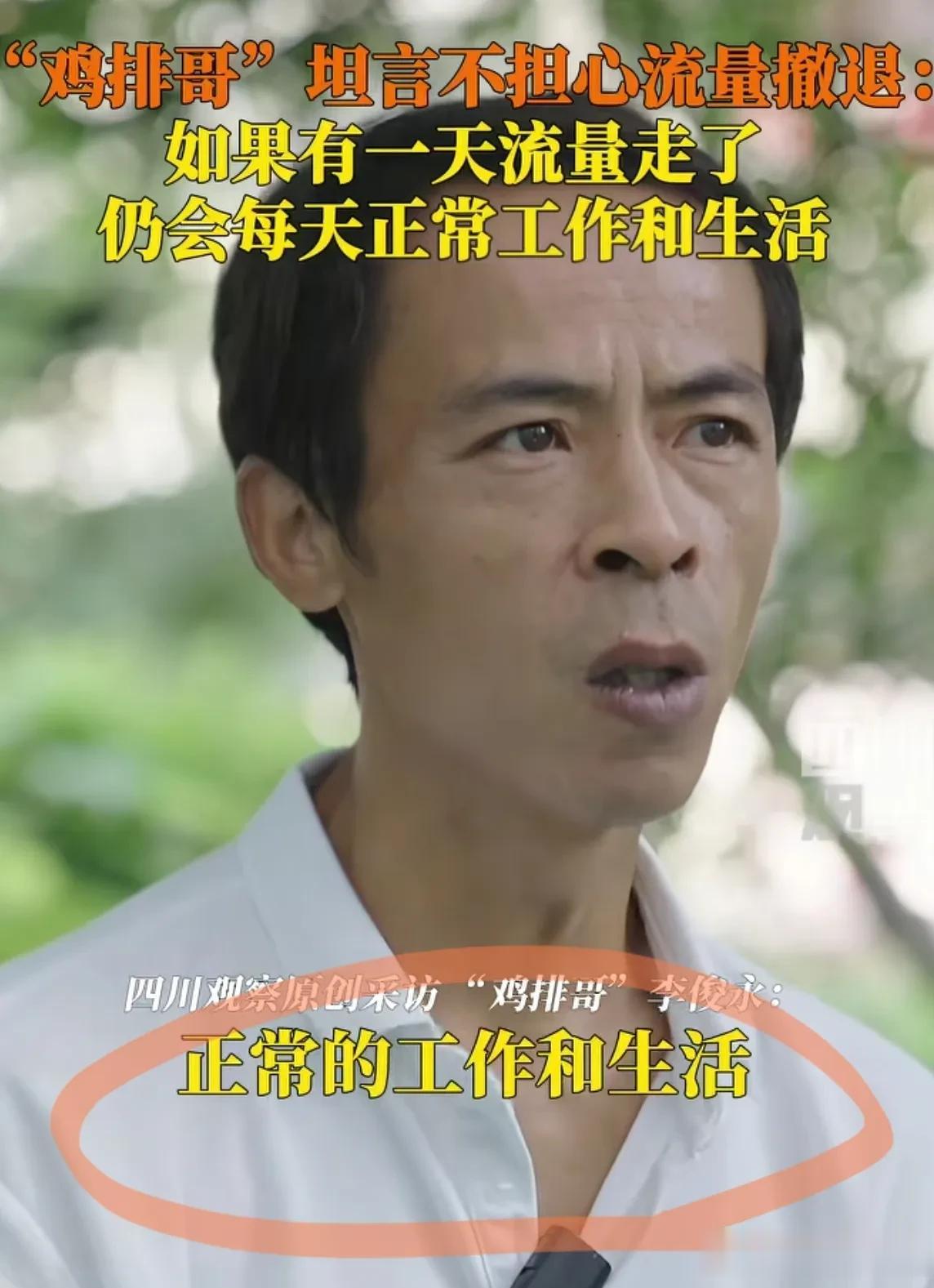 这种“乐商”让鸡排哥注定了即使不“爆火”也肯定会在自己的小世界里活得有滋有味,就像他之前坦言自己不担心流量流逝一样,流量没有来之前我正常的生活工作,流量来了之后也许是打卡景德镇,也许是打卡我“鸡排哥”,流量走了之后我还会回归我正常的工作状态当中,我没有任何的这种担心。