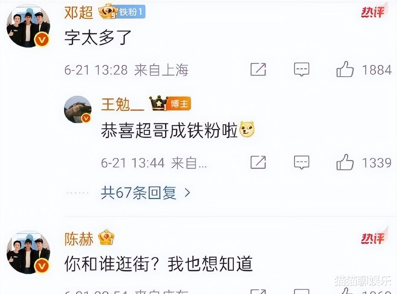 而令人哭笑不得的是,看热闹不嫌事大的陈赫,还跑去直接贴脸问王勉和谁逛街。但王勉并未回复陈赫,反而只回复了邓超。