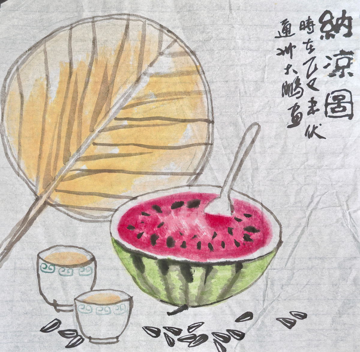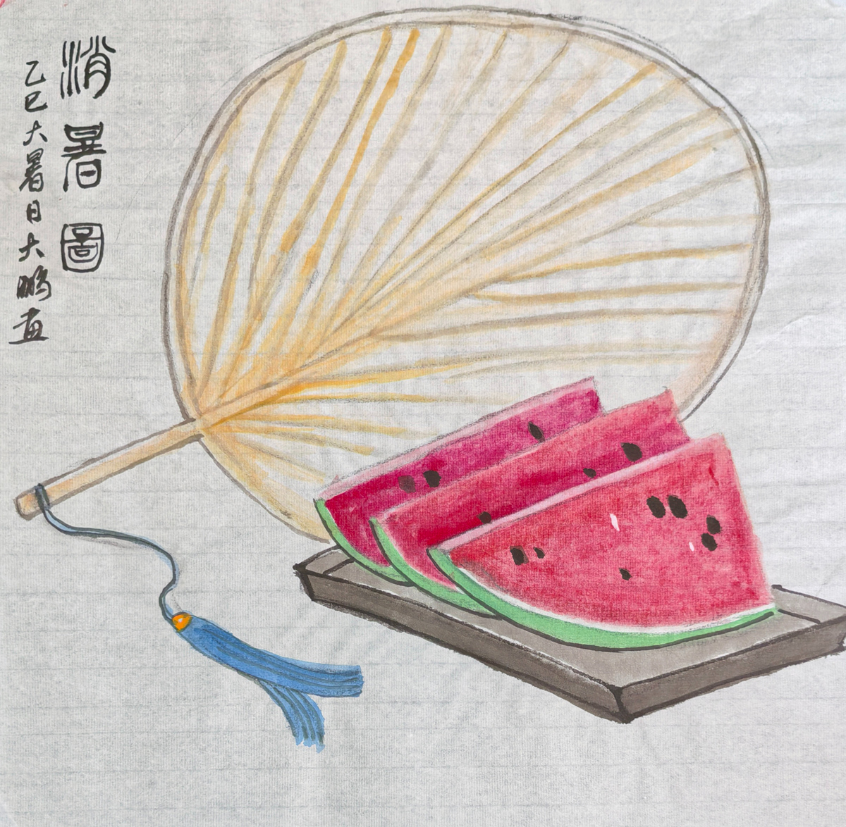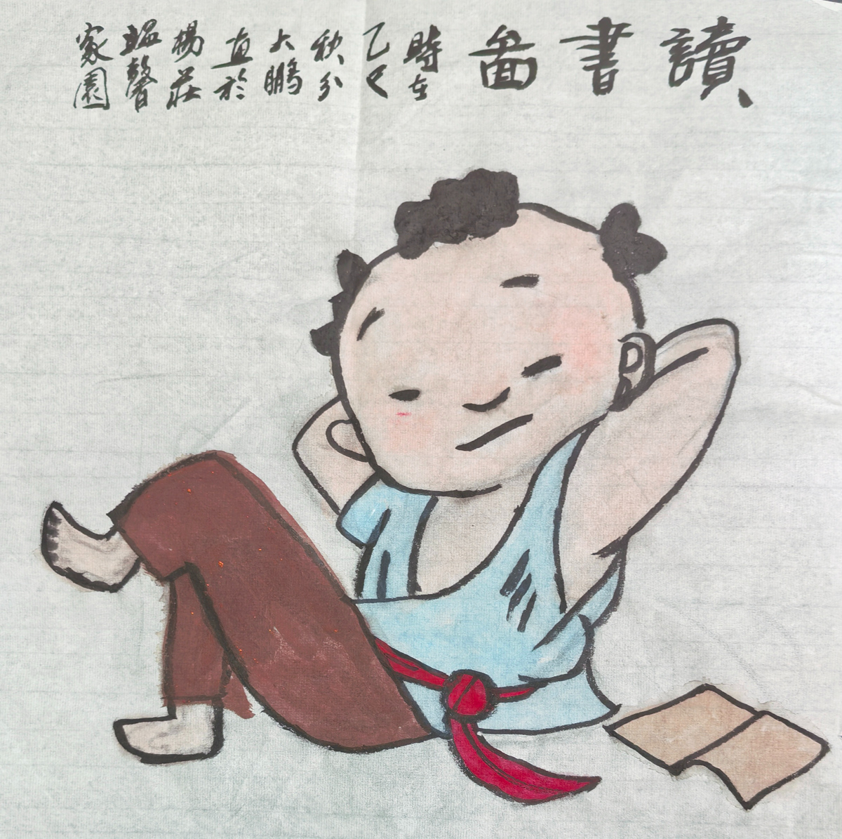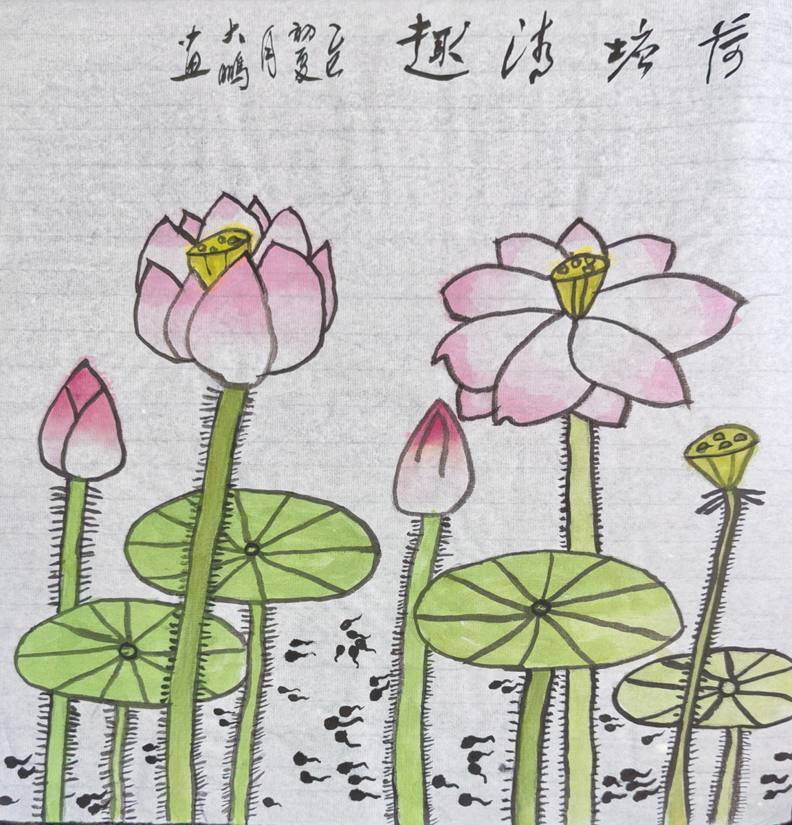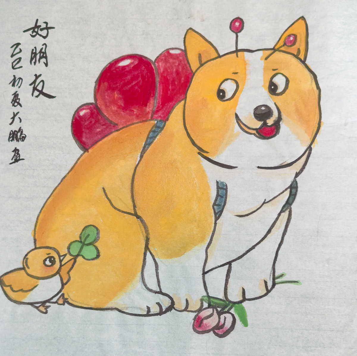 在赵鹏同学的画笔之下,一幅幅生动的画卷悄然展开,仿佛是一曲曲悠扬的旋律,在静谧的时空里轻轻吟唱。他的作品,既有着传统国画的韵味,又不失现代童趣的灵动,让人在欣赏之余,不禁为他的技法之高超而赞叹。