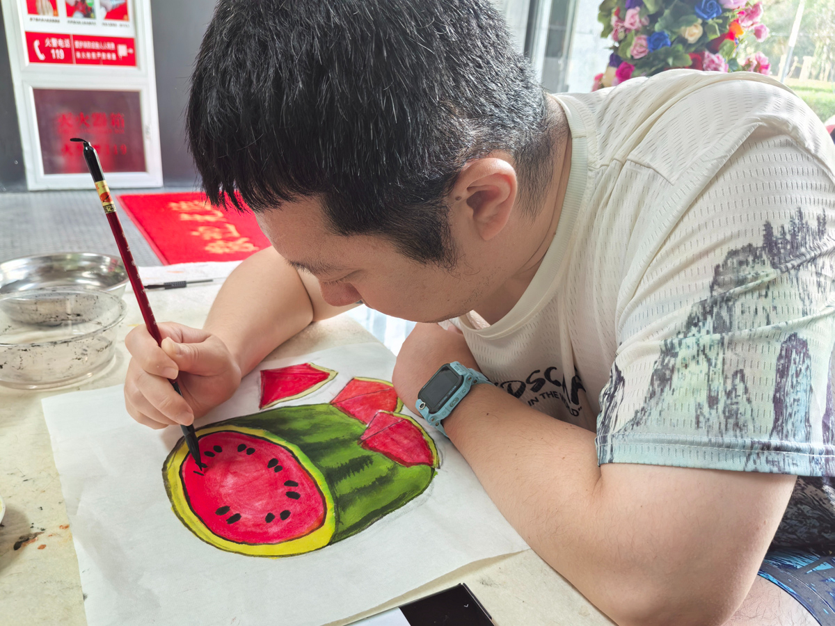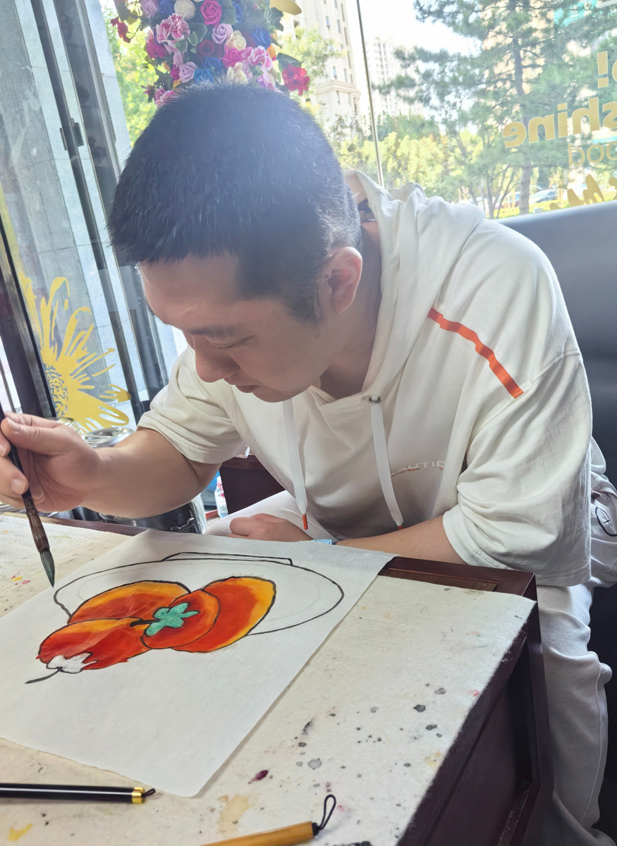 赵鹏是通州区杨庄街道温馨家园、通州区天象天智力残疾人康复中心的二级智力学员,他的蜕变离不开中心主任时仙春、各位老师以及陈双全老师的辛勤付出与无私奉献。尤其是陈双全老师,用爱与耐心为赵鹏打开了一扇通往艺术世界的大门,让他在绘画天地里找到自我,重拾生活的信心与希望。在老师们的耐心、细心、关心指导下,赵鹏取得了今天的成绩,他的故事是一首关于坚韧与希望的赞歌,他用画笔书写着自己不平凡的人生篇章。
