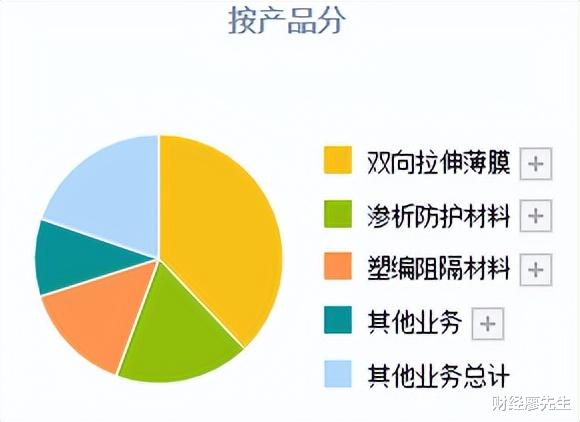 公司的三大拳头产品是:双向拉伸薄膜、渗析防护材料、塑编阻隔材料,三大产品占据了公司68%以上的收入