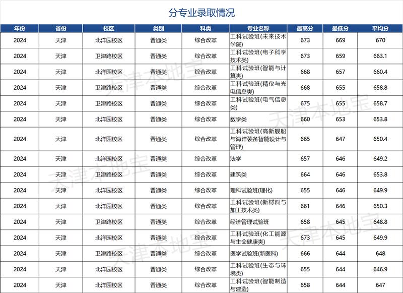 普通本科批次物理+化学两个专业组录取分数线为653分;选考科目不限组录取分数线为651分,全部录取至第一志愿。高分段考生数量较往年有显著提升:工科试验班(未来技术学院)录取分数线为677分;自动化学院卓越创新计划、化工学院卓越领军班、微电子学院吴咏诗英才班等特色实验班录取分数线为675分。2024年