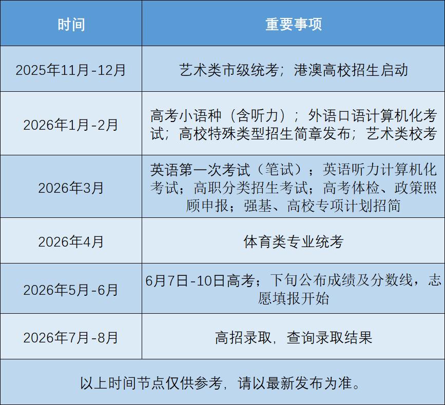26年高考的重要时间节点