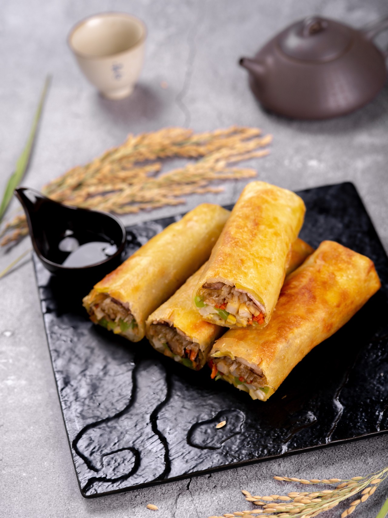 下山后寻觅天台非遗美食。饺饼筒是必点——薄饼裹着笋干、豆面等十几种食材,煎至金黄酥脆,再配一碗铁皮石斛炖鸡,暖身又养生。若想体验禅意,可去国清寺斋堂,2元一位的斋饭虽简单,却在“按需取餐”的提醒中,让人慢下来感受古刹宁静。