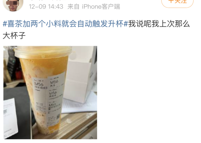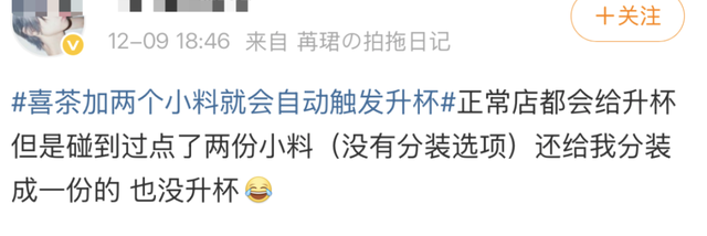 “喜茶+两份小料即可触发升杯,这些年的喜茶都白喝了”