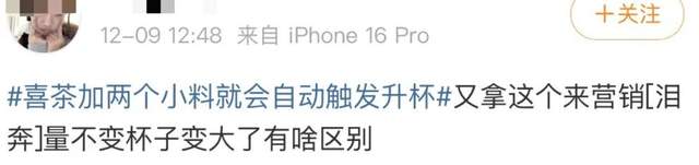 有意思的是,随着讨论不断发酵,话题风向也悄然发生变化,社交媒体上开始涌现不少“打假”声音——“要点两种小料,其实就是换了个杯子而已”、“又拿这个来营销,量不变杯子变大了有啥区别”……