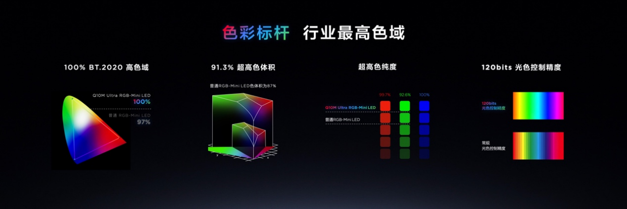 答案很简单,传统的技术潜力发掘殆尽,即便量子点技术应用于电视后显著提升了色彩表现,但过去10年里,技术瓶颈始终没有进一步突破,没法做到全局高色域,画面的色彩表现就达不到十全十美。