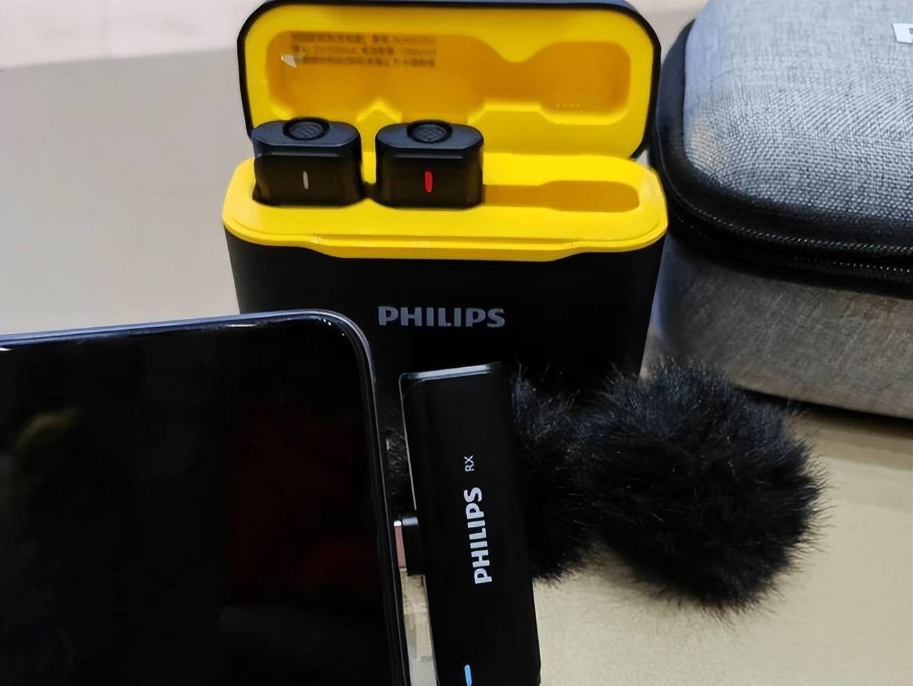 内部主要配置方面,麦克风发射器和接收器内部分别搭载了丝印“UG9084G”和“UG9085G”的无线音频SoC,用于音频数据处理和无线传输。50米无遮挡传输距离,有遮挡时易断连,传输稳定性较差,无法通过APP进行精细控制,操作效率低于智能机型。飞利浦DLM3545C降噪效果较好,只录人声,无损收录声音,不压缩音质,搭载DSP智能降噪芯片,可过滤中低频环境噪音,在室内或轻度嘈杂环境下人声清晰度较高,不过在复杂环境会导致人声发闷,关闭降噪后底噪稍明显。单麦克风续航9小时,搭配充电仓续航可达25小时。