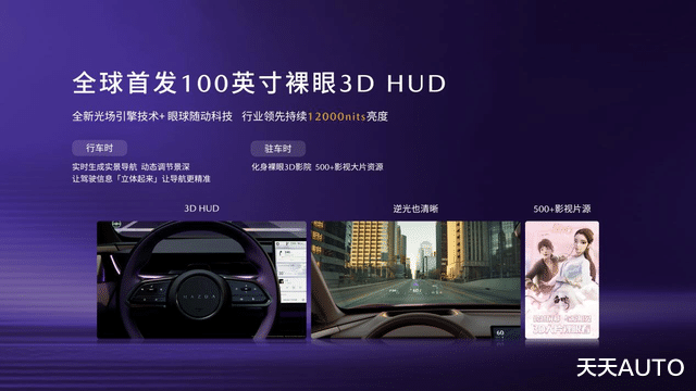 EZ-60全球首发100英寸裸眼3D HUD,将车载HUD视觉技术推向全新高度。SLHM空间算法+导航让信息呈现出“分层景深”,最大限度消除视觉延迟,避免潜在的分心事故。眼位追踪功能让画面和眼球随动,解决了HUD“飘、抖、晃”的技术痛点。此外,3D-HUD还能化身裸眼3D影院,线上影视库提供超过500部3D片源,在停车休息或和家人露营时,超爽大片可以一次看个够。