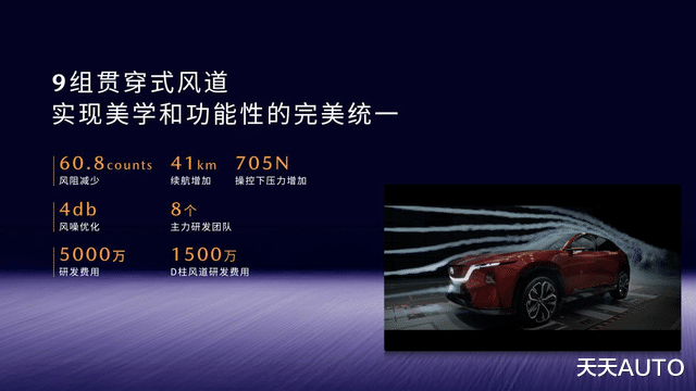 同级首创的9组贯穿式风道与7组空气动力学组件,让EZ-60在行驶过程中减少风阻60.8 counts,CLTC续航提升41km,长途出行时节能效果显著;在高速行驶时,后轴可获得最高705N的稳定下压力,大幅提升行驶稳定性;同时,多风道的设计,有效梳理车身表面乱流,让风噪优化4dB(A),车内环境更加静谧,为用户营造舒适的驾乘空间。