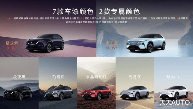 EZ-60前脸采用马自达品牌家族式设计元素,“立体光雕标志之翼” 灯带深度达 60mm,内置72颗高亮度灯珠,夜晚点亮时璀璨夺目,如同水晶般通透立体,带来独一无二的车辆辨识度。新车共提供7种车漆颜色,其中专属的“星云紫”“水天蓝”车漆采用2 - 12μm超细腻珠光颗粒,随角异色性高达 23.7,采用“湿碰湿”三层喷涂工艺,不仅外观亮丽,还能长久保持车身漆面的完美状态。