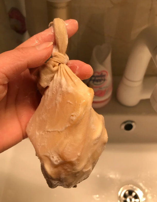 那如果家中有这样的小肥皂头的话,建议你可以直接收集到一个丝袜中,然后再把新的肥皂放在一起,这样使用的话就可以把小肥皂头和大肥皂一起使用,不会浪费。