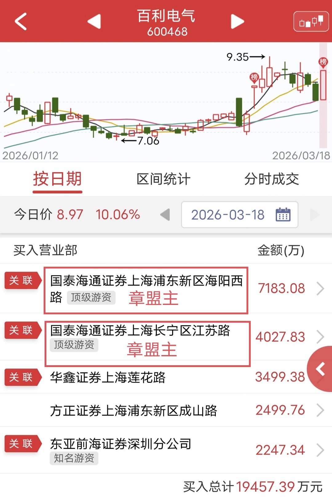 周三百利电气开盘快速涨停,盘后龙虎榜显示,章盟主两个席位合计买入1.1亿。实力还是杠杠的。